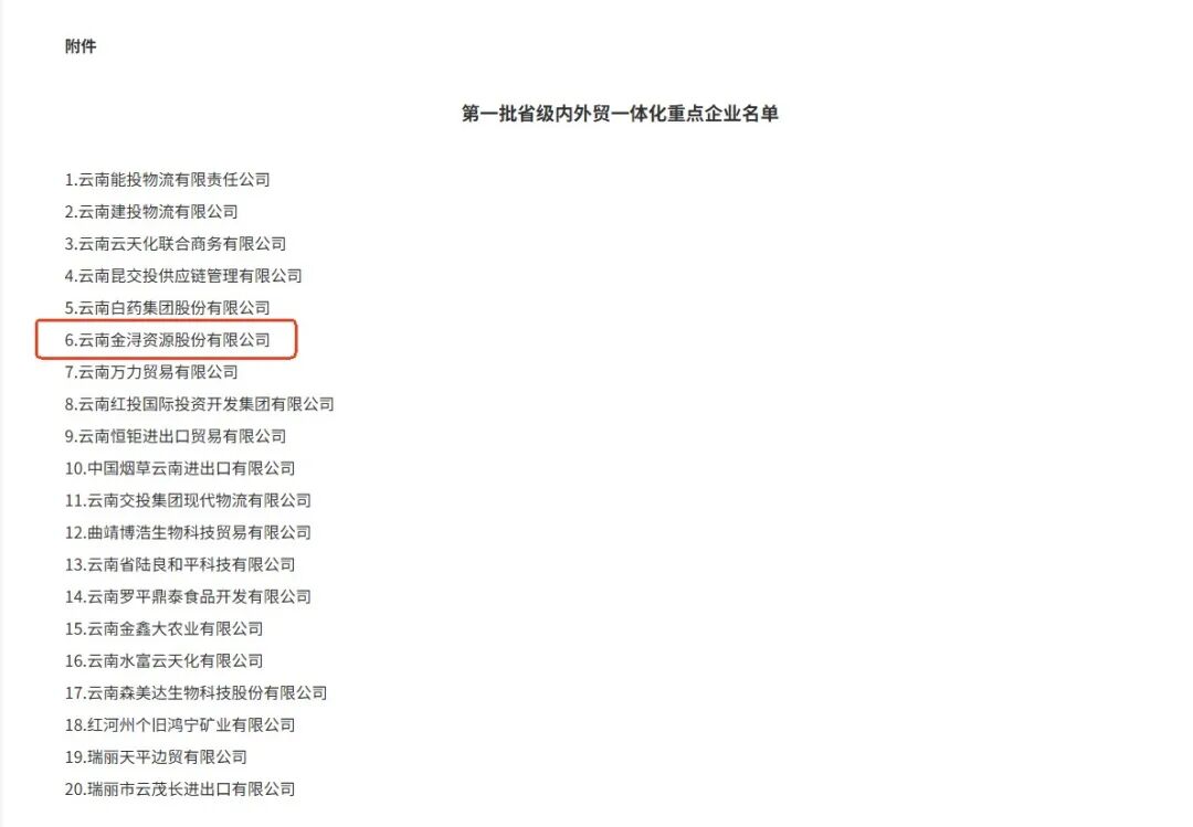 近日,云南省商务厅正式评定我公司为“云南省内外贸一体化重点企业”。这份荣誉,是对公司长期坚持国内国际两个市场协同发展战略的权威认可与莫大鼓励。