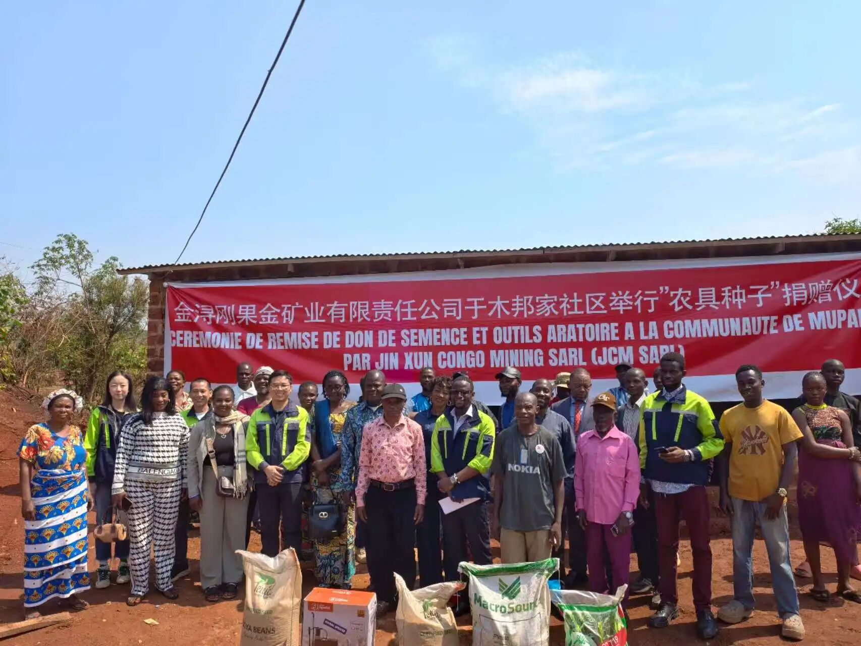 刚果(金)当地时间10月14日,金浔刚果(金)矿业有限责任公司(简称“JCM 公司”)在MUPANJA社区举行农资捐赠仪式。本次捐赠的农资包含 50 袋玉米种子、32 袋黄豆种子、440袋尿素和复合化肥以及175 个农用喷雾器,满足社区当季农业生产需求。